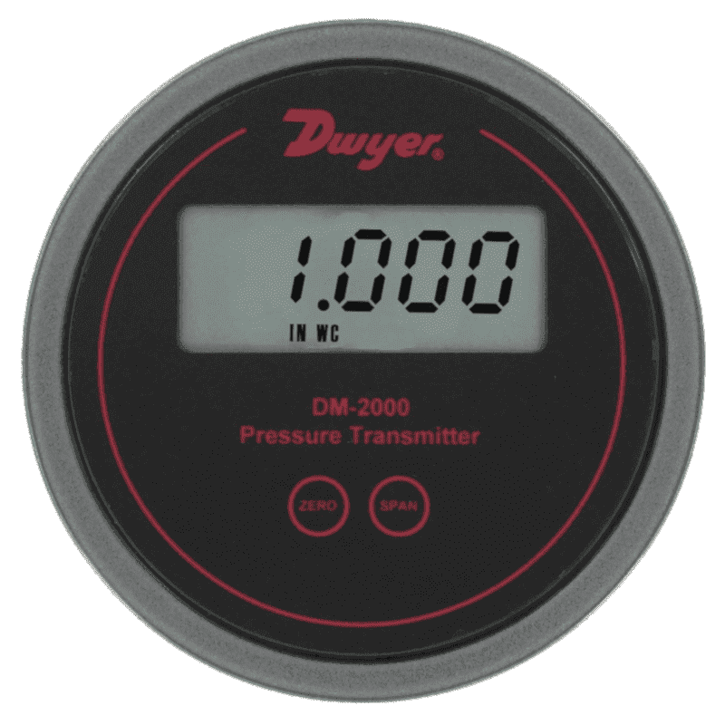 Les transmetteurs de pression différentielle de la série DM2000 so nt utilisés pour la mesure de pression d’air et de gaz compatibles (non corrosifs et non combustibles). Ce transmetteur délivre un signal 4-20 mA. Le boîtier du DM 2000 est de même diamètre que les manomètres Magnehilic standards et peut donc s’adapter aux mêmes découpes. Les raccordements de pression sont directement intégrés au boîtier et permettent une installation rapide et facile. Reglage du zéro et de l’étendue en facade à l’aide de boutons poussoires digitaux. Disponible avec ou sans afficheur LCD.