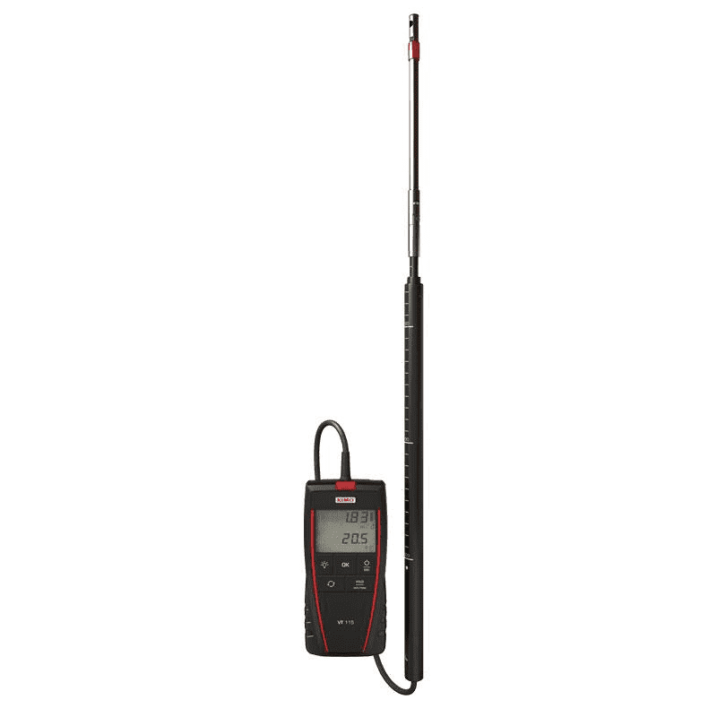 Betrouwbare en nauwkeurige handmeter voor het meten van luchtsnelheid en volume. De VT110 serie heeft een hittedraadopnemer met een ingebouwde temperatuursensor. Standaard functies zijn: min, max, hold, automatische uitschakeling en keuze van eenheden. Elk instrument wordt geleverd in een degelijke draagkoffer en met kalibratierapport of testcertificaat (S modellen).