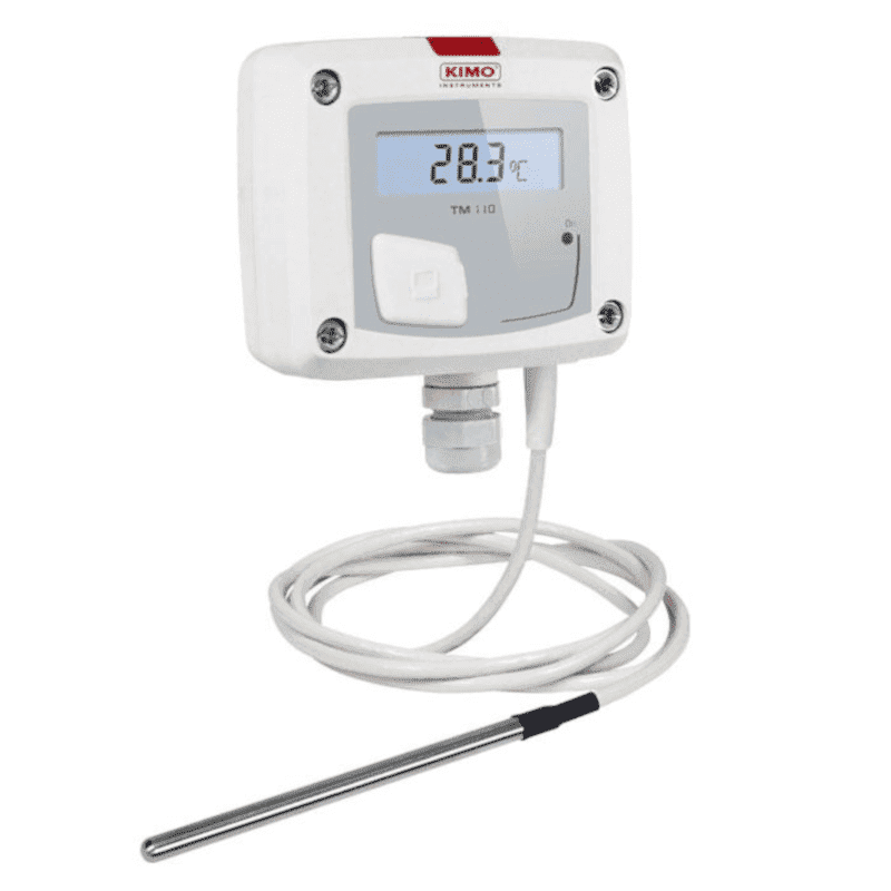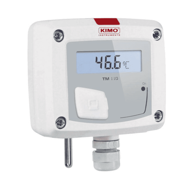 Kimo Temperatuur transmitter Model: TM110-POAI Bereik: -20...80°C Voeding: 24 Vdc Uitgang: 4-20mA (2dr) Voeler: kanaalmontage RVS (direct) Met display P/n 26322