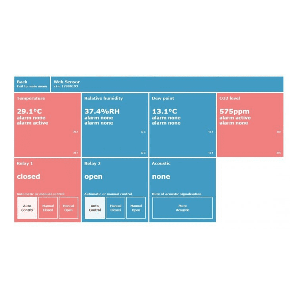 De SensoStat is standaard uitgerust met twee relais uitgangen voor alarm indicatie of voor aansturing van externe apparaten. Elk relais kan aan een bepaalde gemeten of berekende waarde worden toegewezen. Door de gebruiker kan worden gekozen tussen temperatuur weergave in Celsius of Fahrenheit. Deze parameters zijn eenvoudig instelbaar met het bedieningspaneel of vanaf een computer.