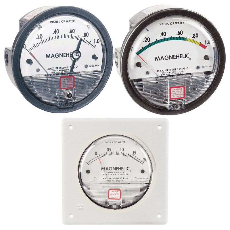 Dwyer Magnehelic manomètre pression différentiel Modèle: 2000-125PA Etendue de mesure: 0...125 Pa Pression max.: -0,677...1,034 bar Raccord de pression: 1/8" NPTF