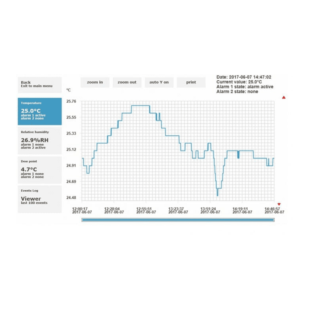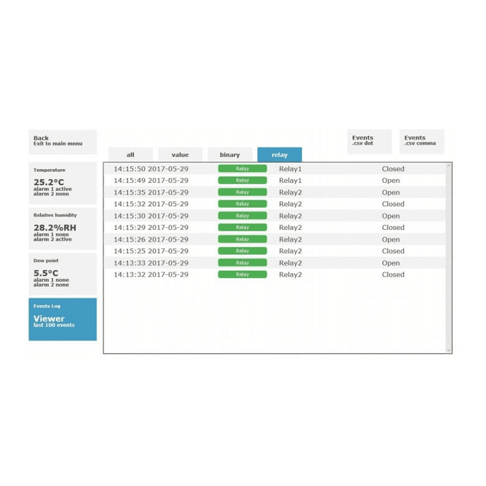 De SensoStat is standaard uitgerust met twee relais uitgangen voor alarm indicatie of voor aansturing van externe apparaten. Elk relais kan aan een bepaalde gemeten of berekende waarde worden toegewezen. Door de gebruiker kan worden gekozen tussen temperatuur weergave in Celsius of Fahrenheit. Deze parameters zijn eenvoudig instelbaar met het bedieningspaneel of vanaf een computer.