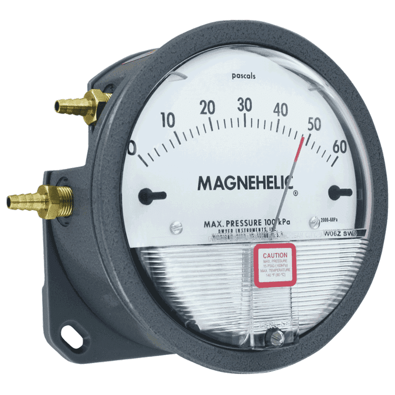 De Dwyer Magnehelic is een drukverschil manometer voor het meten van druk, onderdruk en drukverschil van lucht met een nauwkeurigheid beter dan 2%. Ideaal voor filterbewaking in ventilatiesystemen. De ingenieuze magnetische overbrenging maakt de manometer schok- en trillingsbestendig. De Magnehelic serie 2000 wordt standaard geleverd met bevestigingsmateriaal en slangpilaren.